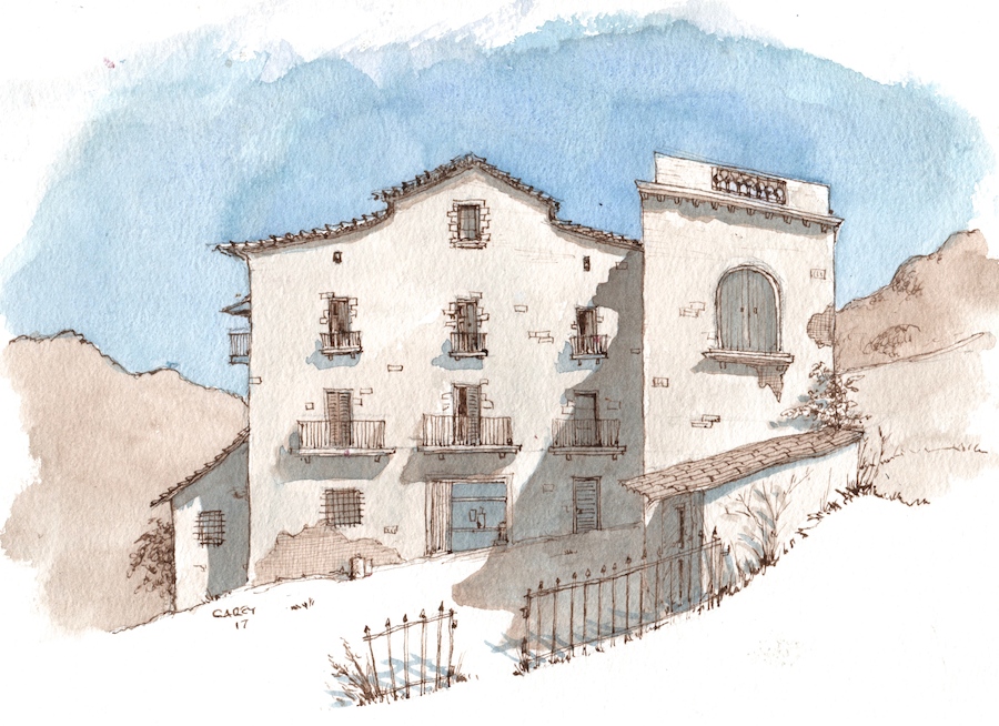 I woke up sick today, so my family went to church without me. I stayed home and sketched our church from a photo I had taken when the trees still had color. Here is where we were married 26 years ago, and here we call home, being with those we call family.